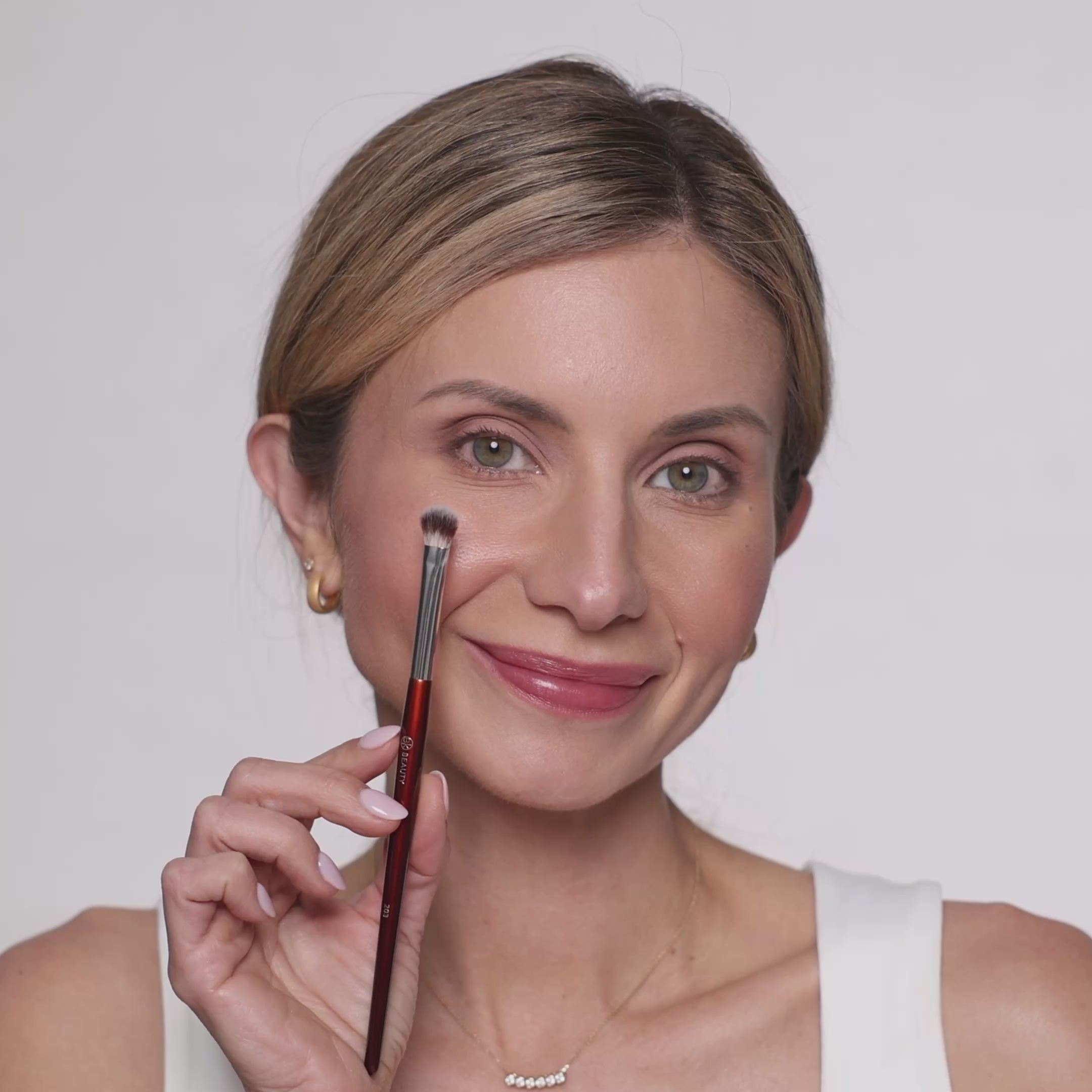 This brush mimics your fingertip but with more precision. It picks up and packs on product like a dream. Best used on your lid for creating the most impactful payoff.